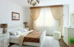 Преимущественно короткие шторы, которые часто заканчиваются на уровне подоконника или посередине окна. Если нужны длинные занавески, лучше выбирать легкие, полупрозрачные ткани.