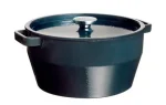 Эти кастрюли изготовлены из стали и покрыты 2–3 слоями эмали. Покрытие эмали не реагирует с пищей, не изменяет вкус и запах блюд и безопасно для здоровья человека. Однако материал очень чувствителен к уходу, и чтобы не повредить эмаль, необходимо использовать деликатные способы чистки. Запрещается: