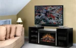 - Мебель же на фоне такой стены смотрится особенно выразительно и даже брутально. Отдельно стоит отметить возможность размещения камина (пусть даже электрического) на ее фоне. Ни обои, ни отделка из гипсокартона неспособна будет подчеркнуть красоту огня и уют, создаваемый камином, как это сделает кирпич. В такой гостиной так и хочется укутаться в плед и пить горячий капучино, вглядываясь в язычки пламени.