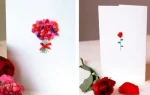 | Pop-up открытка с букетом роз | При открытии открытки внутри раскрывается объемный букет из бумажных роз. | День рождения, 8 Марта, День святого Валентина, годовщина. |