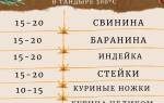| 500-700 | 25-35 | Курица-бройлер, нарезанная на порционные куски, средний огонь |